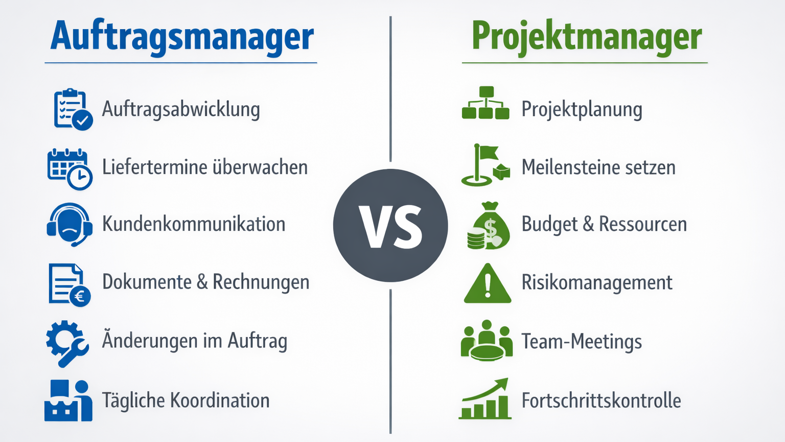 In diesem Beitrag schauen wir uns einfach und praxisnah an, worin der Unterschied zwischen Auftragsmanager und Projektmanager besteht, welche Aufgaben typisch sind und wo sich beide Rollen überschneiden.